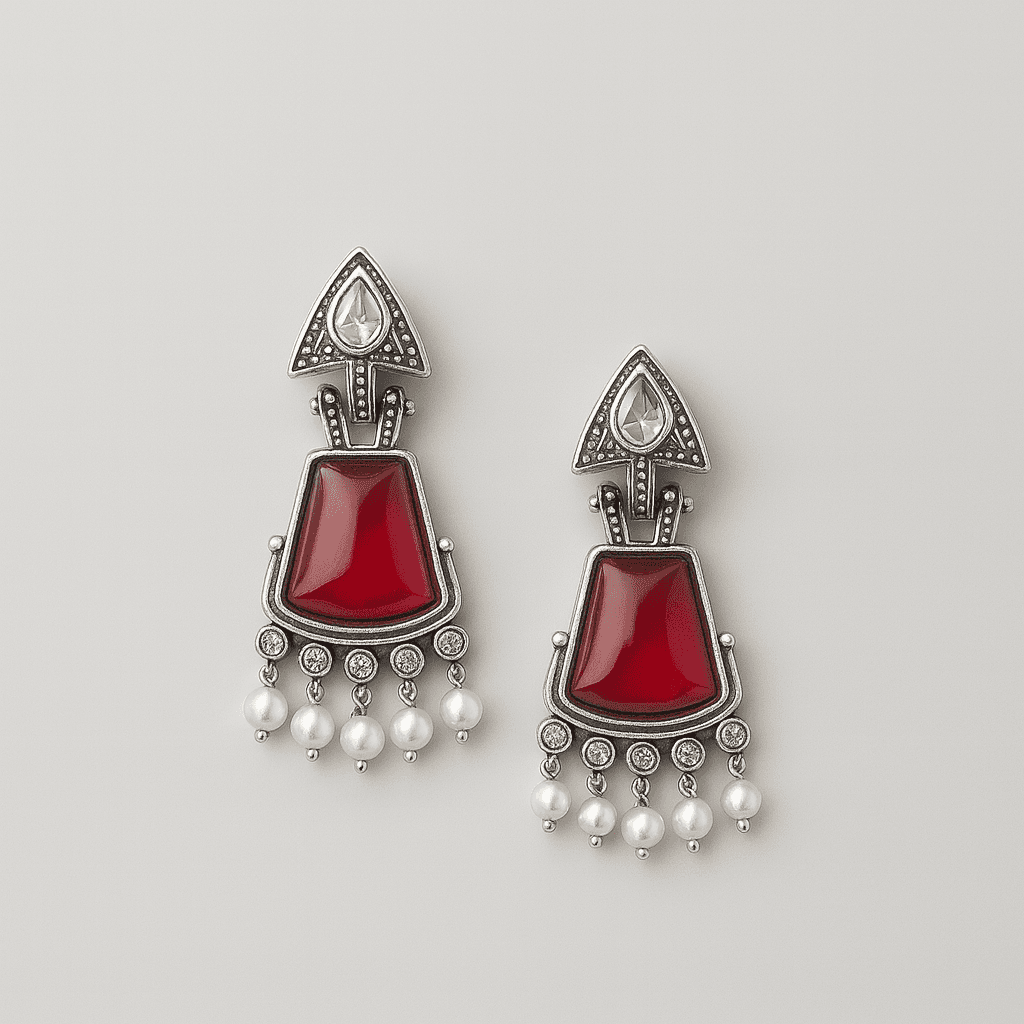 Ruby Red & Pearl Dangle Earrings